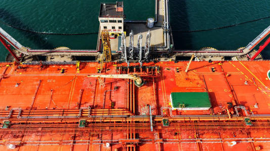 A tanker berthed and unloaded imported crude oil at the Qingdao Port crude oil terminal in Qingdao, China, on November 28, 2025. - CFOTO/Future Publishing/Getty Images