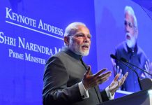 India's Prime Minister Narendra Modi delivers his keynote address at the opening of the 17th Asian Security Summit of the IISS Shangri-La...
