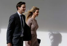 White House Senior Adviser Jared Kushner and his wife Ivanka Trump walk along the colonnade ahead of a joint press conference by...