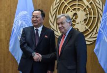 WASHINGTON, DC - SEPTEMBER 28: Ri Yong-ho North Korean Minister Of Foreign Affairs meets with United Nations Secretary General Antonio Guterres at...