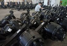 In this Aug. 29, 2018, photo, a man works in an auto parts factory in Liaocheng in eastern China's Shandong province....