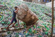 In Dhaka, Bangladesh, a man adds to a mountain of discarded plastic bottles. With this issue, National Geographic invites other institutions to...