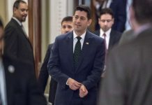 US House Speaker Paul Ryan, R-Wis., emerges from the House chamber on Friday just after key conservatives in the House Freedom Caucus...