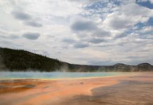 Grand Prismatic Spring at Yellowstone National Park in Wyoming. Volcanic activity is responsible for some of the parks most spectacular sights.