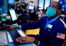 Trader Aaron Ford works on the floor of the New York Stock Exchange, Monday, July 19, 2021. Resurgent pandemic worries knocked stocks...