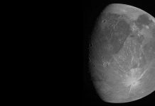 This June 7, 2021 image made available by NASA shows the Jovian moon Ganymede as the Juno spacecraft flies by. “This is...