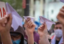 A protest by Belarusians living in Poland in support of Roman Protasevich on Monday. - Wojtek Radwanski/Agence France-Presse — Getty Images