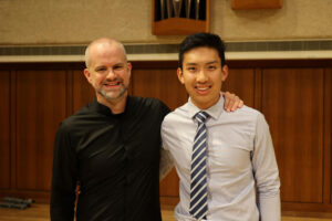 Conductor Ryan Kelly, left, and composer Kevin Charoensri at the 2022 debut of “Rising Light” at the University of Texas at Austin’s Butler School of Music. – Jacob Bricker
