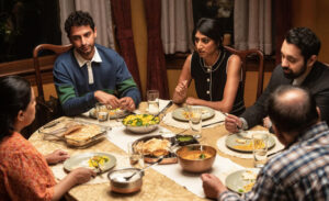 In one scene, Naveen’s father tells both his son and Jay, who has come over to their house for the first time, that he has played a specific television channel to make them feel more comfortable.
