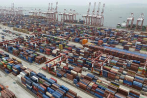 Shipping containers are seen ready for transport at the Guangzhou Port in the Nansha district in southern China’s Guangdong province, April 17, 2025. ((Ng Han Guan / AP))