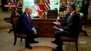 In the ABC News interview, journalist Terry Moran mentioned to Trump that economists say his tariffs will raise prices. Moran then noted Trump said in a social media post in early April that Americans should “hang tough” amid his trade battles and that “it won’t be easy” (before, he said, the US wins).