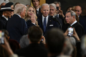 President Donald Trump is sworn in by Chief Justice John G. Roberts Jr. during Monday’s inauguration at the Capitol. – Ricky Carioti/The Washington Post