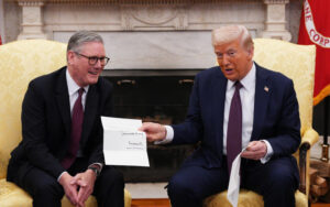 Donald Trump was presented with a letter from King Charles, inviting him for an unprecedented second state visit, during his meeting with Sir Keir Starmer at the Oval Office in February – Carl Court/PA Wire