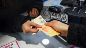A one thousand Argentine peso bill is shown inside a store, in Buenos Aires, Argentina, in July 2022. – Cristina Silles/Reuters