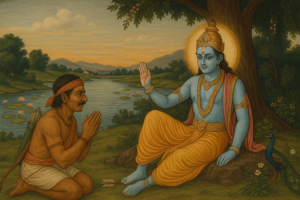 The Gita’s deepest lesson is not that we can escape karma through devotion alone, but that we can meet it with full awareness, courage, and detachment. Krishna’s final act was not the chariot at Kurukshetra, but his quiet acceptance under a tree by the sea.