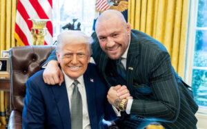 The meeting was overshadowed days later, however, by the guest of honour at the Oval Office on St Patrick’s Day itself. Conor McGregor, the former mixed martial arts fighter seeking to become the president of Ireland, swaggered into the White House press room, where he accused the Irish government of overseeing an “illegal immigration racket”.