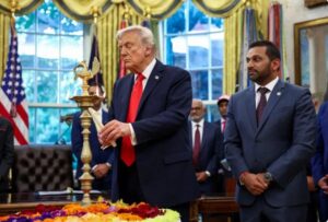 FBI Director Kash Patel looks on as US President Donald Trump lights a candle during a Diwali celebration at the White House on October 21. – Kevin Lamarque/Reuters