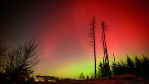 A geomagnetic storm caused an auroral display over western Germany Monday evening. – Sascha Schuermann/AFP/Getty Images