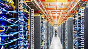 A technician works at an Amazon Web Services AI data center in New Carlisle, Indiana, on October 2, 2025. – Noah Berger for Amazon Web Services/Reuters