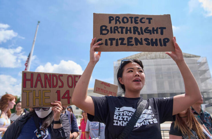 Trump says he’s unsure whether people in the US are entitled...