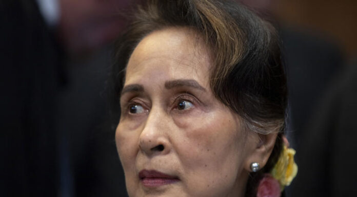 FILE - Myanmar's leader Aung San Suu Kyi waits to address judges of the International Court of Justice in The Hague, Netherlands, Dec. 11, 2019. A court in military-ruled Myanmar convicted former leader Aung San Suu Kyi in another criminal case Thursday, Sept. 29, 2022, and sentenced Australian economist Sean Turnell to three years in prison for...