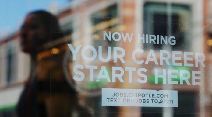 A Chipotle restaurant advertises it is hiring in Cambridge, Massachusetts, U.S., August 28, 2023. REUTERS/Brian Snyder