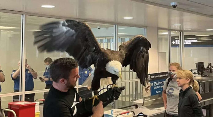 A bald eagle named Clark went viral on social media after he was spotted at a security checkpoint.