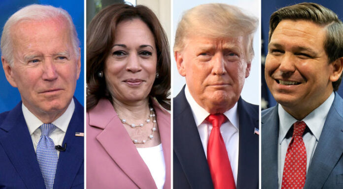 In this combination image from left to right, Joe Biden, Vice President Kamala Harris, Donald Trump and Ron DeSantis. - Getty Images