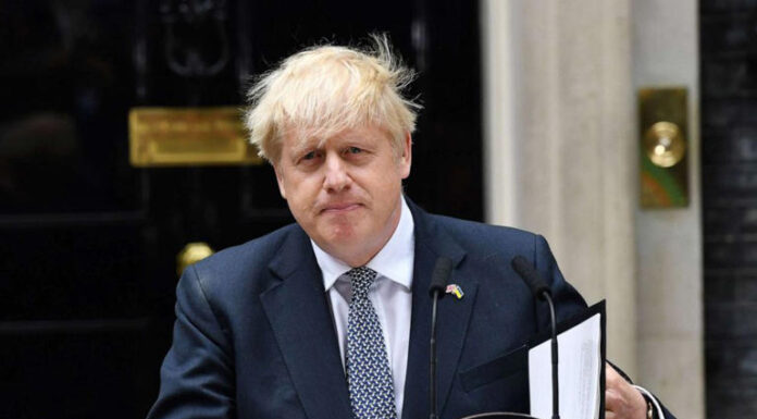 Boris Johnson delivers his resignation speech outside No.10 Downing Street in London, July 7, 2022. - James Veysey/Shutterstock