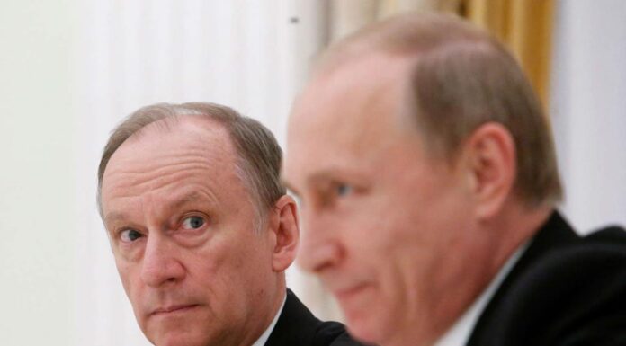 Russian Security Council Secretary Nikolai Patrushev said Russia has no timeline for when it will end the war in Ukraine. In this photo, Patrushev (L) looks at President Vladimir Putin during a meeting at the Kremlin in Moscow, Russia, on May 26, 2015. - Photo by SERGEI KARPUKHIN/POOL/AFP via Getty Images