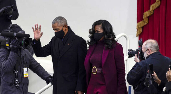 Former President Barack Obama and former First Lady Michelle Obama arrive for Joe Biden's inauguration in 2021. - (Kent Nishimura / LA Times)