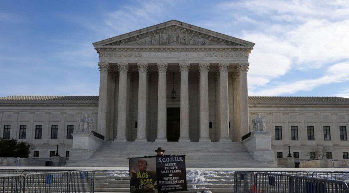 Stephen Parlato holds a sign outside the U.S. Supreme Court building in Washington, D.C., Jan. 19, 2022. -Leah Millis/Reuters