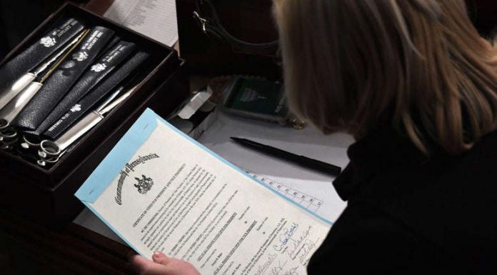 This is what the real election certificate from Pennsylvania looks like. Saul Loeb/Getty Images