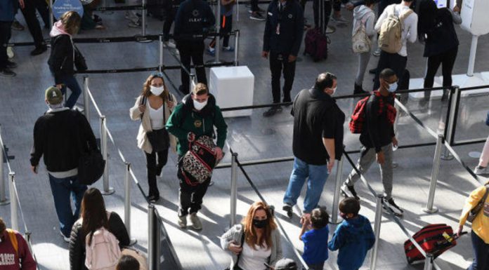 People are seen in a TSA security checkpoint line at Orlando. - SOPA Images