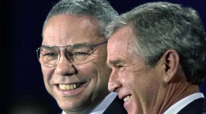 Colin Powell with George W Bush in 2000. - Photograph: David J Phillip/AP
