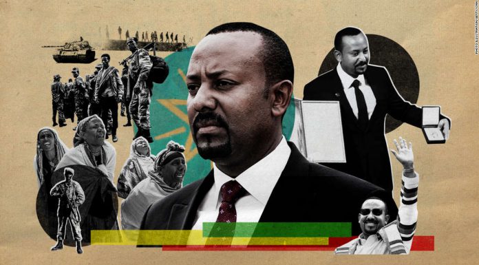 "Abiy, Abiy," the crowd chanted, waving Ethiopia's tricolor flag and cheering as the country's new prime minister, dressed in a white blazer with gold trim and smiling broadly, waved to a packed basketball arena at the University of Southern California in Los Angeles, part of a whirlwind three-city tour of the United States to woo the diaspora.
