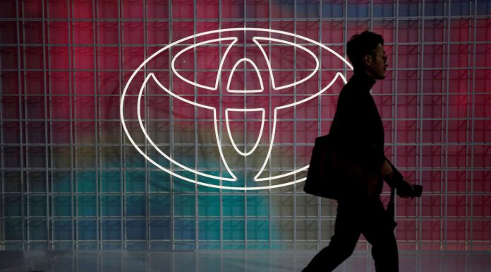 FILE PHOTO: A man walks past a Toyota logo at the Tokyo Motor Show. - Reuters/Edgar Su