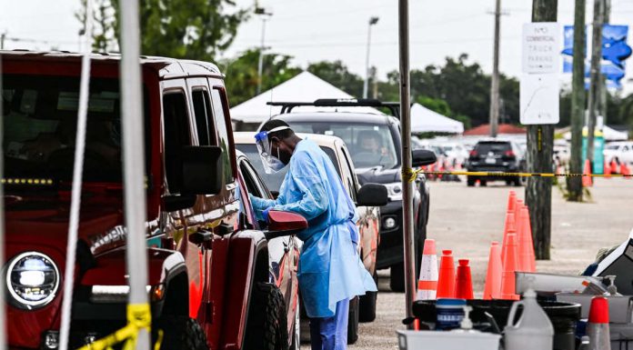 A coronavirus testing site in Miami on Tuesday. Chandan Khanna/AFP — Getty Images