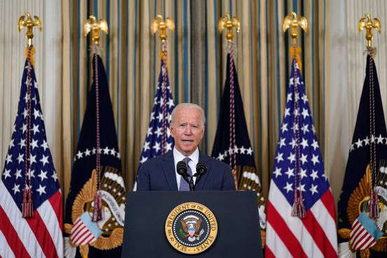 President Joe Biden speaks with members of the press before boarding Air Force One, Friday, July 9, 2021, at Andrews Air Force Base, Md. Biden is spending the weekend at his home in Delaware. (AP Photo/Patrick Semansky)