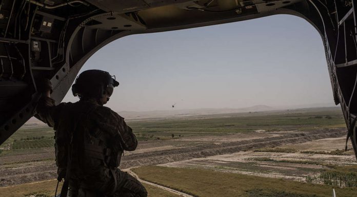 A U.S. Army helicopter flies from Camp Shorab to Camp Bost in 2017 in Helmand Province, Afghanistan. - Andrew Renneisen/Getty Images