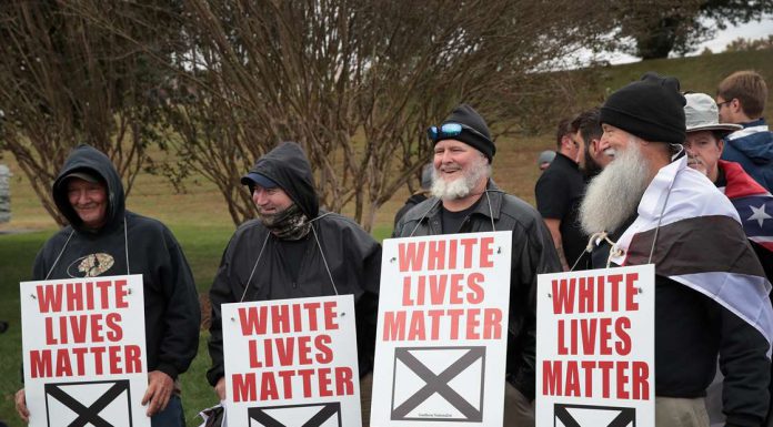 White nationalist attend a rally on October 28, 2017 in Shelbyville, Tennessee. The event billed as a White Lives Matter rally is hosted by Nationalist Front, which is a coalition of several white supremacist organizations. - Scott Olson/Getty Images